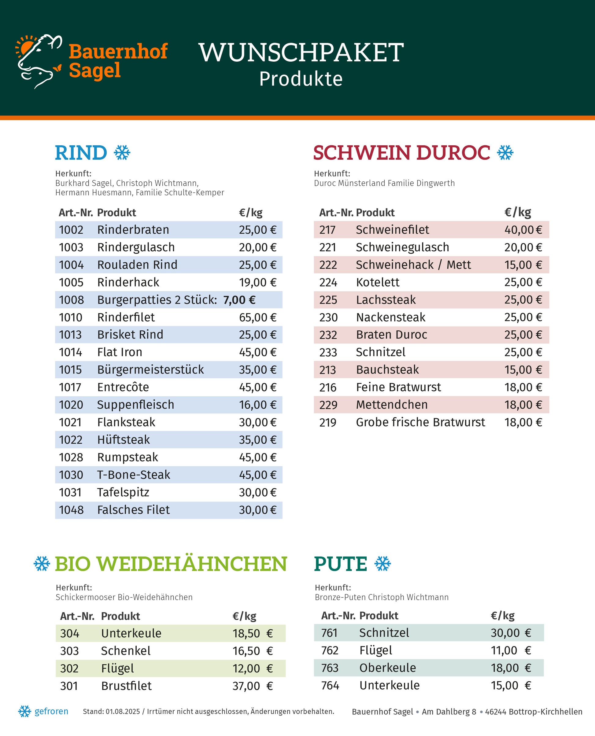 Wir versenden mit gekühlten Spezialkartons einmal im Monat an einem Dienstag Nachmittag. Meistens ist das Paket am Mittwoch Nachmittag bei Ihnen.